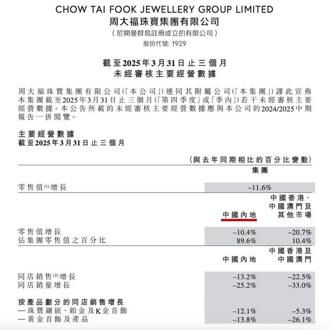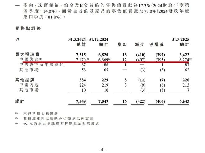 当前,国内珠宝零售行业格局正发生明显变化。周大福(等传统金饰品牌,以及梵克雅宝、卡地亚等高奢珠宝品牌,在中国市场纷纷遭遇经营挑战,投资缩减趋势明显。以周大福为例,在2024/2025财年第四季度(截至2025年3月31日),该集团零售值、同店销售等多项核心数据全面下滑。其中,该集团在中国内地零售值同比减少10.4%;同店销售和销量分别下滑13.2%和25.2%。从2024年3月31日到2025年3月31日,周大福珠宝在中国内地的门店从7170减少至6274,净减少高达896家。老铺黄金正是瞄准了这一行业变革的窗口期,试图进一步扩大市场份额,抢占奢侈品的地盘。