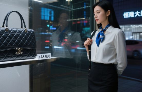 橱窗正中央,那只黑色的经典款菱格纹手袋,静静地躺在丝绒展台上,散发着致命的吸引力。