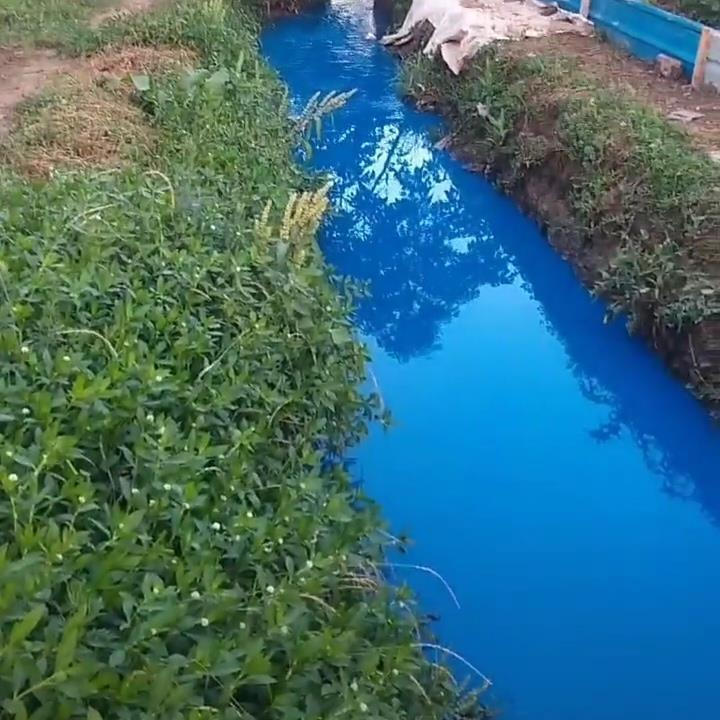 湖南娄底一水沟水体被染成蓝色,环保部门:已对水体取样调查。
