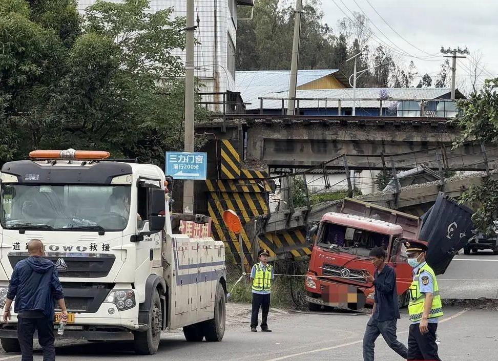 四川西昌一货车被断裂垮塌铁路桥压住,当地:铁道线已废弃多年。
