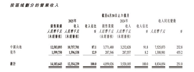 不过,毛利受限也没拦住老铺黄金经营数据的暴涨。上半年,老铺黄金收入为约123.54亿元,较2024年同期收入约35.20亿元增长约88.34亿元,增长率约为251.0%。