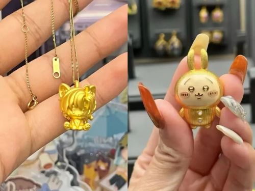 潮宏基的黄油小熊挂件售价280元,看起来价格友好,但要知道,其中仅含0.1克黄金;小金毛吊坠,含金0.7克,淘宝一口价2679元;1.15克的库洛米转运珠,特价后仍高达2188元,总之无不是远超品牌金价。