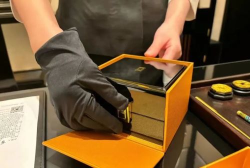 所有门店均为自营,开在北京SKP、上海豫园、广州太古汇;店内搞成“中式老钱风”,还偷师LV设有专属茶室;产品方面有金龙金凤、万年如意以及麦穗貔貅等,极具朝代感;包装配色也相当的“爱马仕”。
