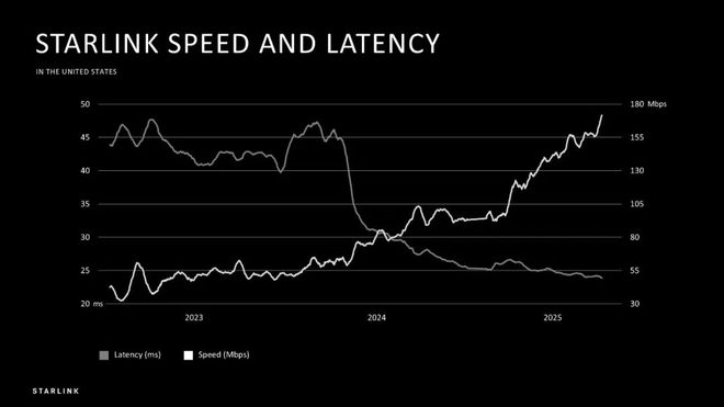 星链崛起就像一枚猎鹰火箭有序启动,一飞冲天。2018年2月,两颗测试卫星Tintin A与B升空,拉开序幕。2019年5月,首批60颗运营卫星上天,奠定星座基点。2020年,美国本土开启公测,下载速度达100Mbps以上,远超传统卫星服务(如HughesNet的25Mbps),延迟降至30ms以内,远胜传统高轨卫星。