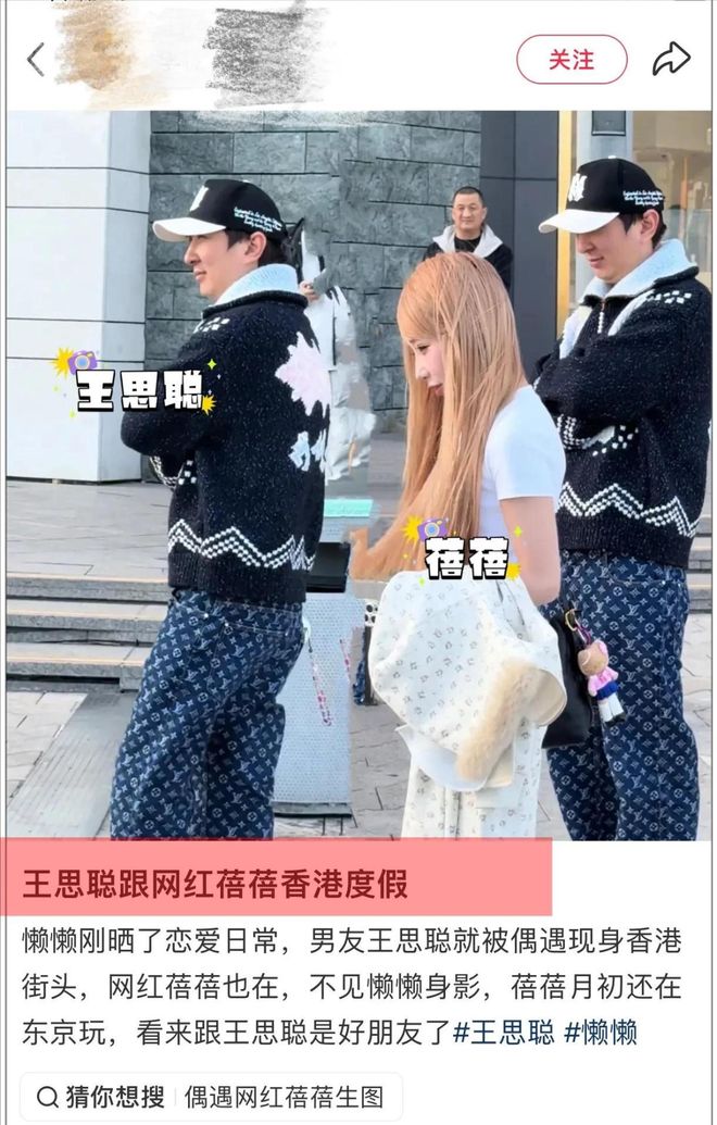 要是王校长心里真把她当回事,真把她视作正牌女友,又怎么会转头就跟别的女生勾肩搭背、毫不避嫌呢?更绝的是,懒懒的主权宣言刚在社交平台挂了两天,就被现实狠狠抽了一记响亮的耳光。11月29日,有网友在香港铜锣湾的街头偶遇王思聪,当时陪伴在他身边的,又换成了一张全新的面孔——网红蓓蓓。网友们看了照片后纷纷调侃:这换人的速度,怕是校长最近公司资金回笼顺利,手头宽裕了,开始恋爱消费升级了?