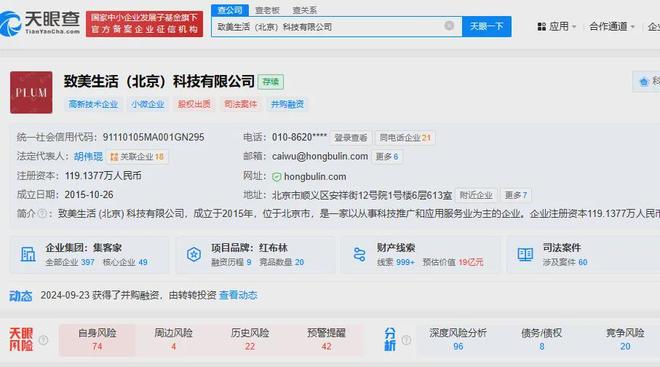在今年中旬,北京时间、《消费电子》杂志等媒体均报道,红布林存在货不对板、假冒伪劣等问题。而据天眼查数据显示:红布林母公司致美生活(北京)科技有限公司资深风险74,深度风险分析96,司法涉案件数为60条。
