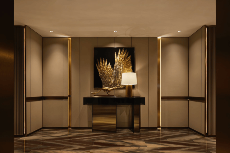 高端装修:项目户型高品质装修交付,汇聚国际塔尖品牌!入户大门采用master/迪瑞装甲门,尽显尊仪阔达!
