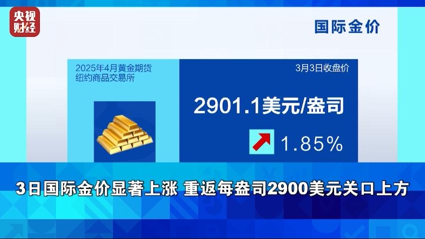 然而到了这周一(3月3日),受美国加征关税决定影响,大量资金涌向黄金避险,美元继续走软也缓解了黄金的价格压力,国际金价又显著上涨,当天收于每盎司2900美元整数关口上方。