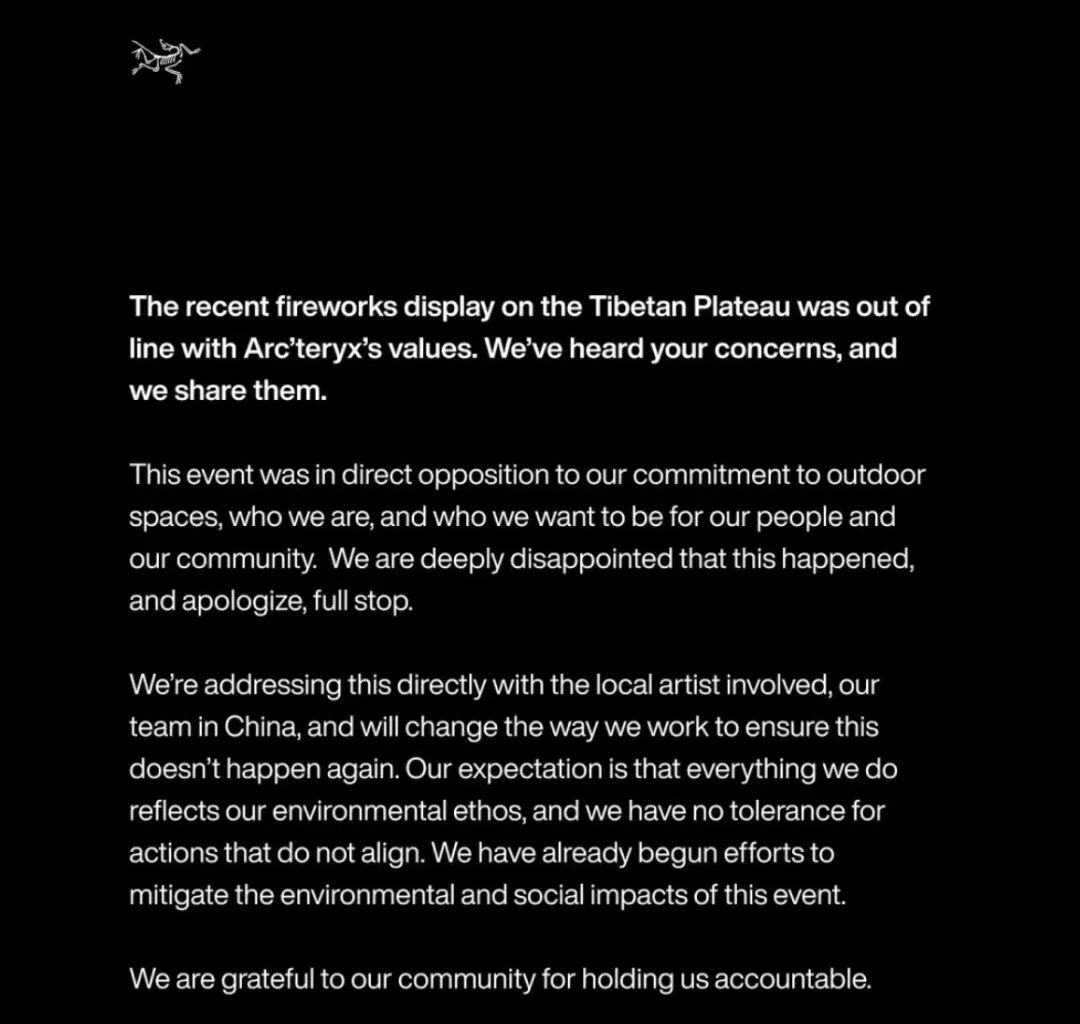 始祖鸟一直以来向消费者传递的是对自然的敬畏和守护。然而,此次在喜马拉雅山脉举办烟花表演,无疑是对这种价值观的公然背离。