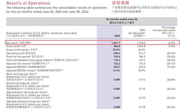 据新秀丽2025年中期报告显示:新秀丽销售净额为16.62亿美元,同比下降6%。亚太地区作为新秀丽的重要市场,销售净额减少了8.0%,是所有区域中下降幅度较大的。