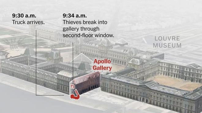 2025年10月19日,巴黎时间早上9点30分,正值卢浮宫博物馆向访客开放之际,四名窃贼大摇大摆地来到卢浮宫南侧,将一辆卡车停在人行道上,紧贴着博物馆外墙。