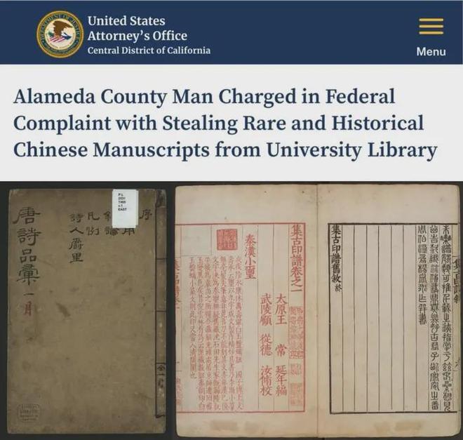 好比之前的美国华裔男子偷书案,38岁湾区男子杰弗里·应(Jeffrey Ying)被指控在五年内利用假身份,从UCLA图书馆盗走总价值约21.6万美元的中国古籍手稿。他使用“艾伦·藤森”、“奥斯汀·陈”和“杰森·王”等假名,通过学校便利借书系统借走珍稀古籍,并用空白册子或伪造手稿混充归还。