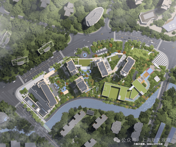 回过来看金茂·璞元,它与瑞虹新城融为一体共享配套,同时距离地铁站更近(就在10号线邮电新村站站口)通勤效率直接拉满,更有沙泾港天然河道与地块平行,顶豪标配的滨水而居氛围跃然纸上!