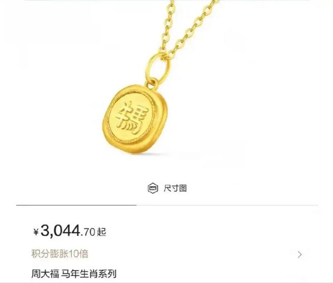 现在线上金价跳水的情况不少,但这枚吊坠在官方小程序卖3186元,天猫旗舰店最高还卖到了3200多。