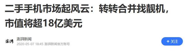 转转其实也不是第一次收购二手交易平台了,在2020年5月6日的时候转转就战略合并了二手手机B2C交易平台找靓机。